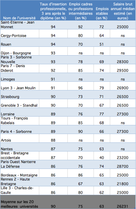 Cũng như các chuyên ngành khác, sinh viên tốt nghiệp các trường đại học tại Paris sẽ được hưởng mức lương cao hơn. Ví dụ : Paris 3- La Sorbonne Nouvelle (28.300 euros /năm) hay Paris 7 – Paris Diderot (29.500 euros/năm)