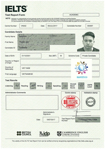 KẾT QUẢ IELTS CỦA PHẠM THỊ QUỲNH ANH TRONG 3 THÁNG HỌC TẠI HAVETCO