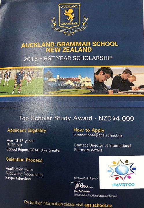 Mời các bạn học sinh tham gia chương trình học bổng trị giá $NZD4,000 với trường Aukland Grammar New Zealand năm 2018: